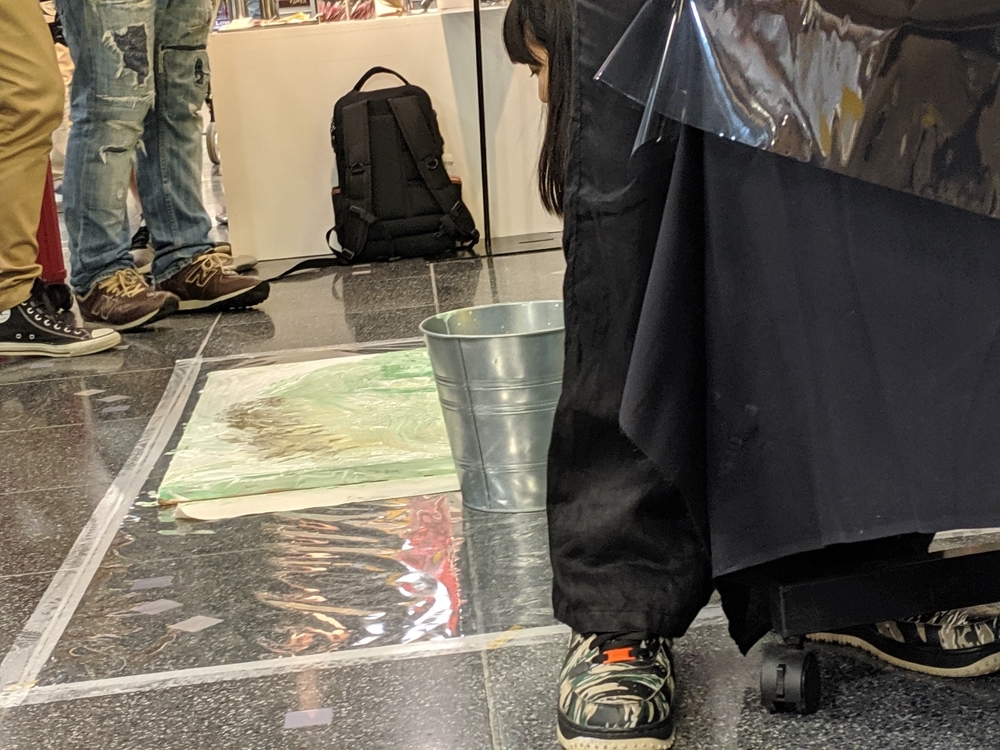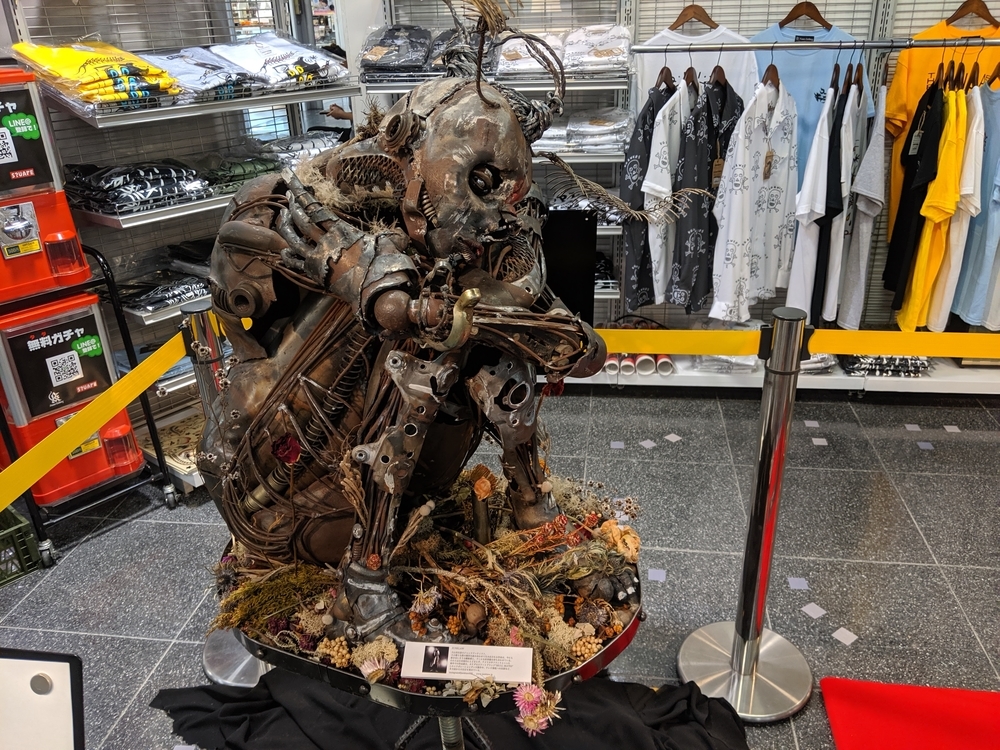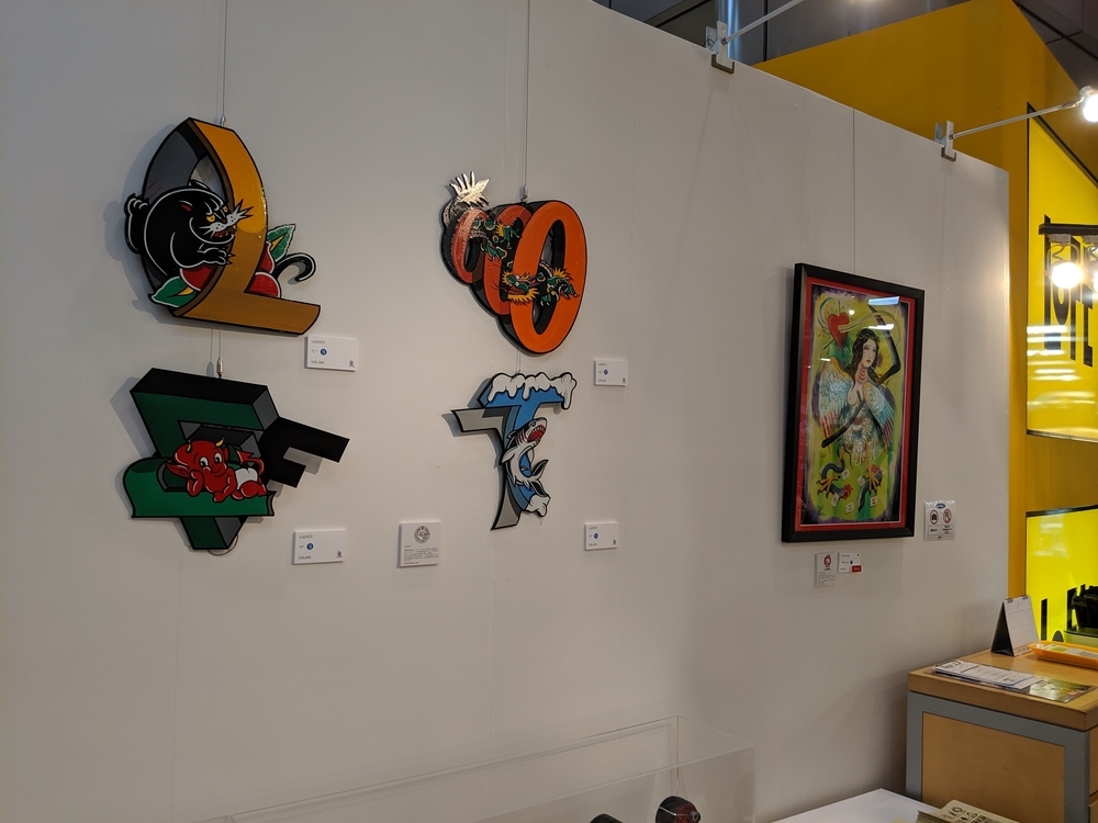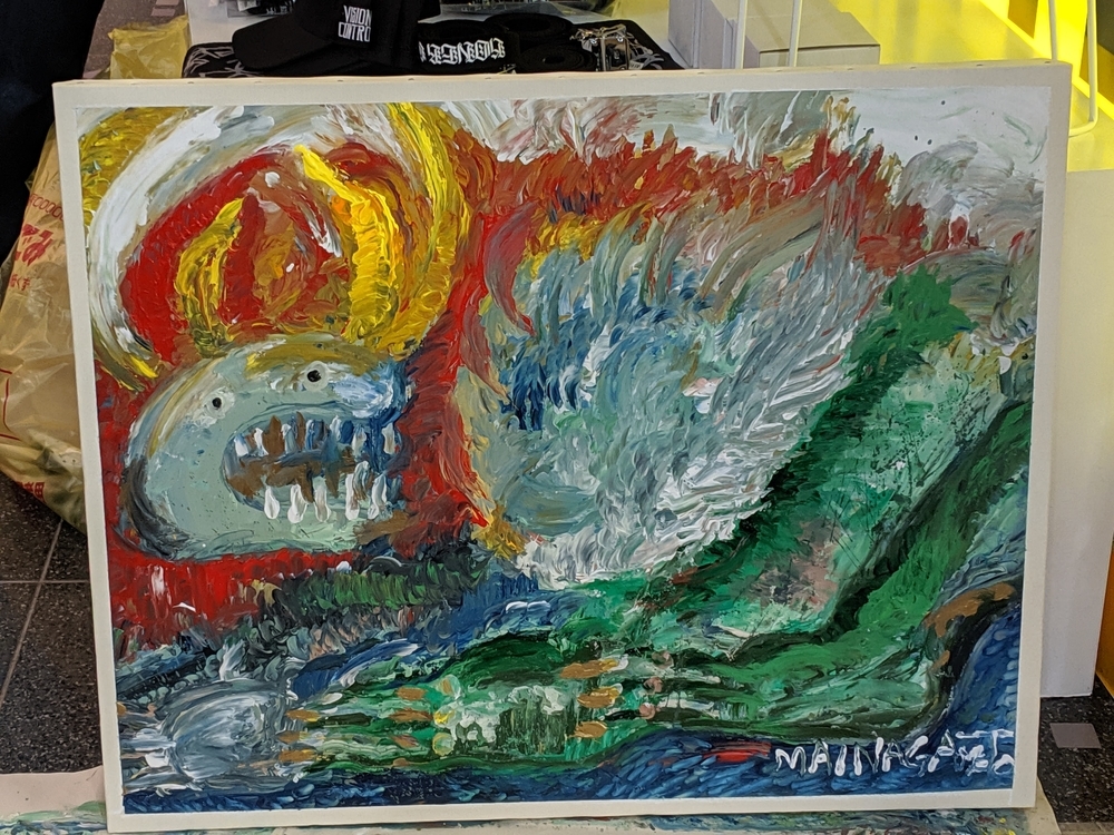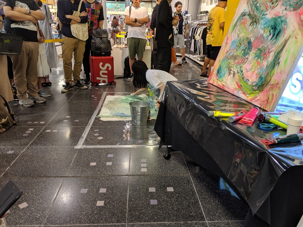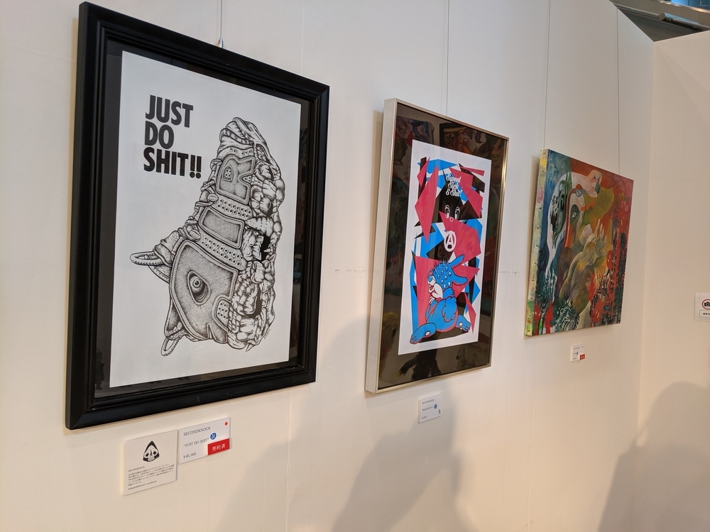 KONER GALLERYさんは、ロウブロウアート(アンダーグラウンド・コミックスやパンク・ミュージック、ホット・ロッドのストリートカルチャーにそのルーツを持つ大衆文化運動)を中心に、日本から世界に独自のアート・カルチャーを発信するブランドです。 公式サイト -ART&MERCHANDISE ONLINE STORE イベントスケジュール。 LAiNNYさんのカスタムペイントも今日だと勘違いしていました。 会場の様子。 イズモさんのソフビは、当初10個でしたが、最終的には15個限定となりました。ワンオフ品? を一部含みますが、既に販売されたカラーリングで、交換対応用のストックか、サンプルのものだったのかもしれません。 僕の狙いはサベージキッドでした。一個づつの販売と思っていましたが、セット販売! ライブペイント編。 HIDEYUKI KATSUMATAさんのライブドローイング。 ナガモトマイさんとイズモさんは同時にペイント開始。 両者、手を使って作品を作成されていきますが、どちらも異なる進め方でした。 ナガモトマイさんは、とても大胆にブルトーザーで地面を慣らすかの如く絵の具を広げ、絵の輪郭は一気に見えてきます。 一方、イズモさんは絵の具を触接キャンバスに落として、手で繊細に伸ばしていきます。下地からゆっくりと作っていって、なかなか何を描いているのか見えてきません。 ここでイズモさんは一度キャンバスを乾かします。 龍のような輪郭がみえます。 ナガモトマイさんは一気に描き続けます。 完成後、やっと勇気を出してお話することができましたので、どういう気持ちで描いたのかお聞きすることができました。普通はキャンバスが乾かないうちに描き出すと色が混ざってしまって、いい色が出ないそうです。それでも描いてしまうのは、おそらく、乾かしている内に気持ちの勢いが逃げてしまうような感じがするのだと思います。マイさんは、「くやしいから」という独特の表現をされていました。 今回の絵の見どころは手足です。最近は手足の部分に特に力を入れて描いているそうです。今回は、それが功を奏して、手足をしっかり描いている内に他の部分が乾くことで、自分でも新境地に達した作品になったそうです。 会心の出来! こちらがイズモさんの完成状態。 実は、乾かしているって気づかなくて、完成したと思ってしまい、一時席を外してしまっていました(汗)。 この間の様子は、他の方のインスタグラム等に上がっていると思います。 抽選会の様子。 SNSのアカウントを言って、抽選券をもらう方式でした。 当選数は少ないですが、東京のイベントに比べたら、倍率は悪くなかったと思います。 んが……ハズレました! 泣きの一回もハズレ! 片方は持っているものと同じでしたので、当選しても悪いし……辞退しようと……そんな心配いりませんでしたねッ! 最後に、いっぱいあるのに、なぜか当選者にしか配ってなかったポストカードとステッカーを、恥を承知でクレクレしたら貰えました。もしかしたら、明日以降は配っているかもしれません。 ソフビゲットならずでしたが、今回も素敵な出会いありでしたので、良いイベントでした。 ……。 ……今回浮いたお金でンフフフ。 ちなみに……600番代でした。 僕にしては、なかなかの良番!!
