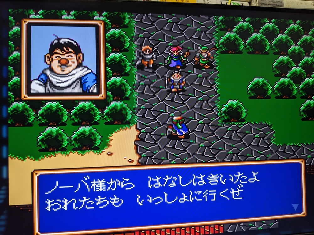 ターンベースシュミレーションゲームですが、通常はマップ移動ができ、村人に話しかけたりすることができます。十字に配置されたアイコンのコマンドは操作しやすいですね。