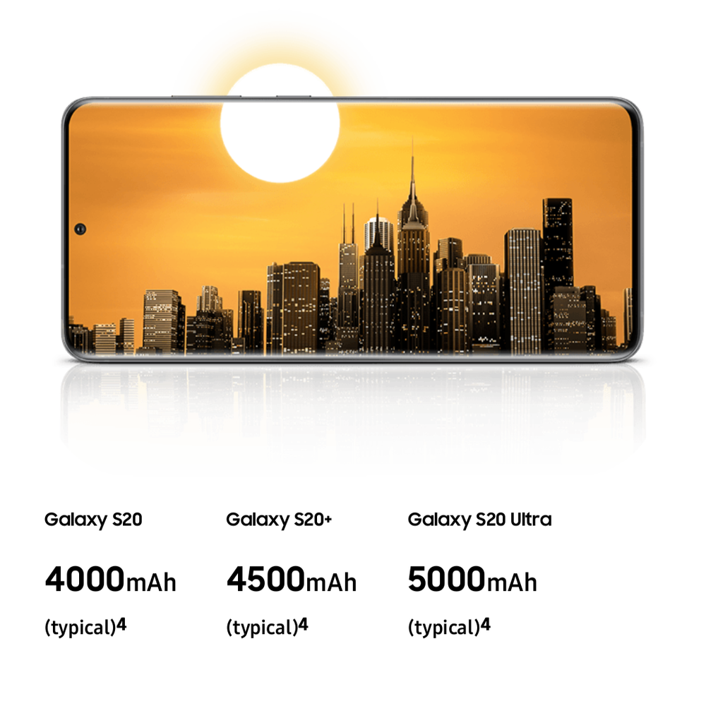 Galaxy S20シリーズは一番小さな無印でも4000mAhあります。iPhoneやPixelよりも1000くらい多いと思います。