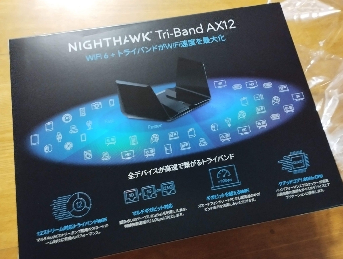 メッシュWi-Fiじゃないのは、NETGEAR社の製品で、狙ってる仕様のものが、予算オーバーだったからです。実家の通信端末が多いこと、親父が一日中You Tubeを垂れ流すような人間に進化したことで、トライバンドに対応している製品が良いなと思ったからです。接続機器が多い場合、干渉の多いデュアルバンドよりもトライバンドのほうが良いみたいな、ネット記事に踊らされました。ええ、あんまり詳しくないです。