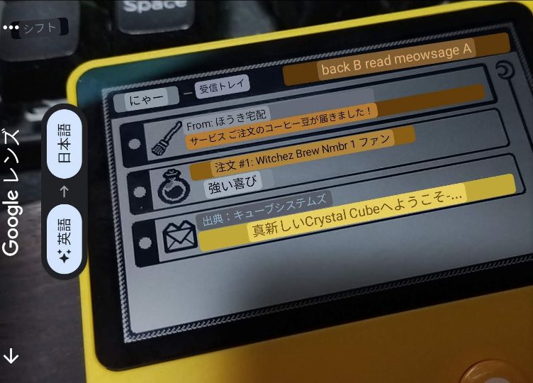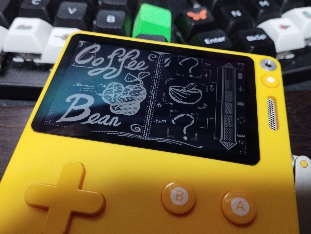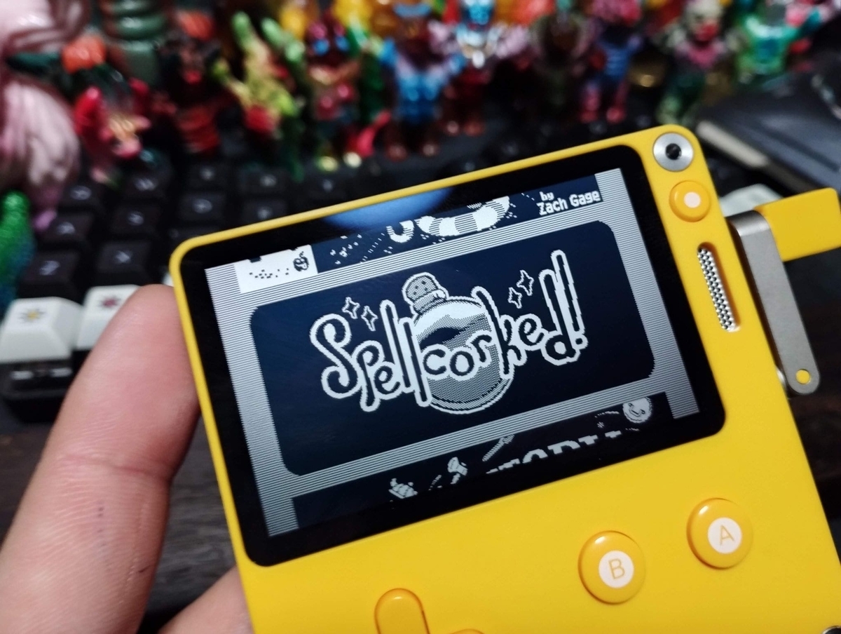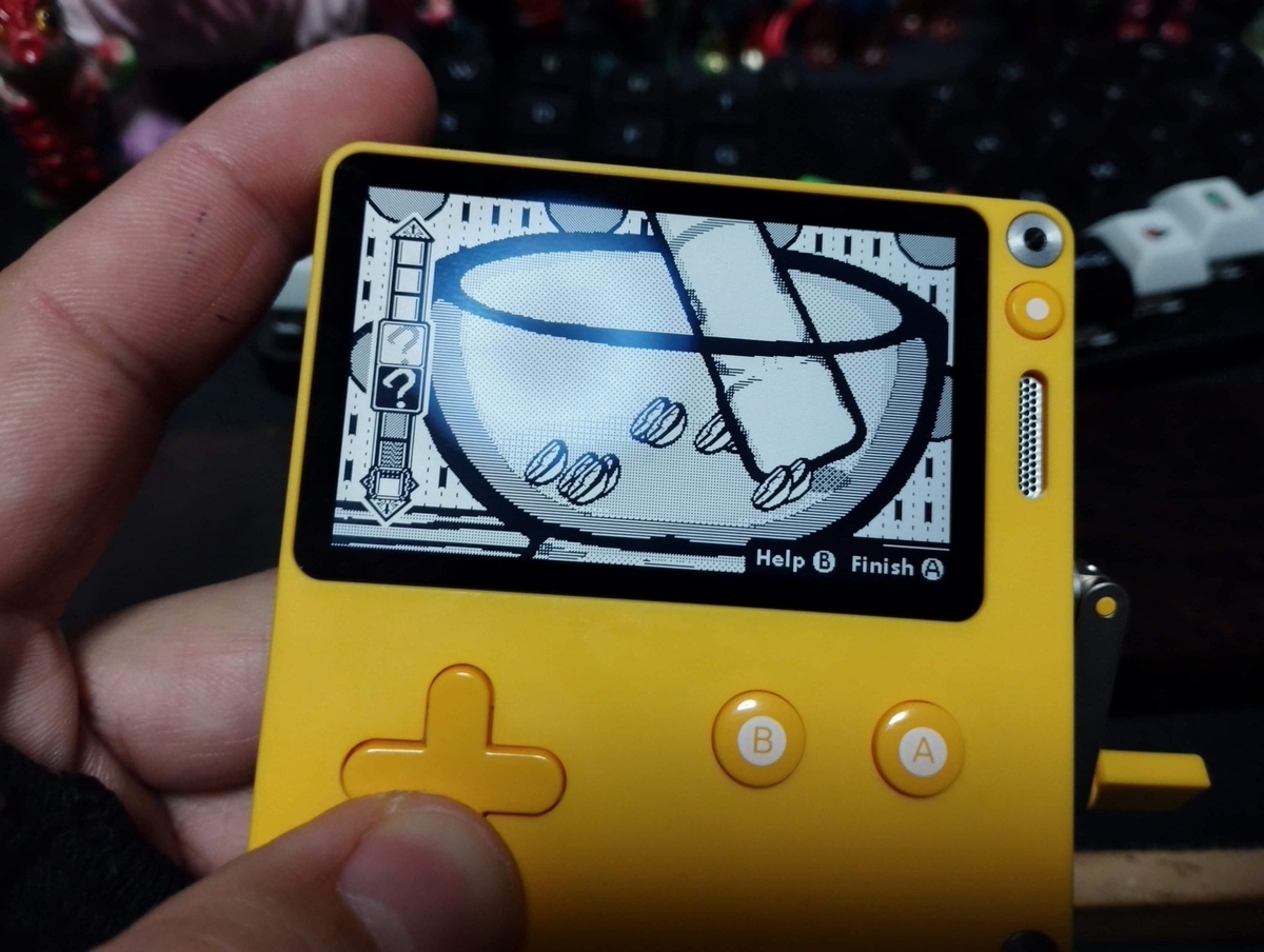 パニック・プレイデートは黄色いキュートな本体に、高精細のバックライトなし(!)モノクロスクリーン、格納式のクランク付きという尖った仕様の最新の携帯ゲーム機です。