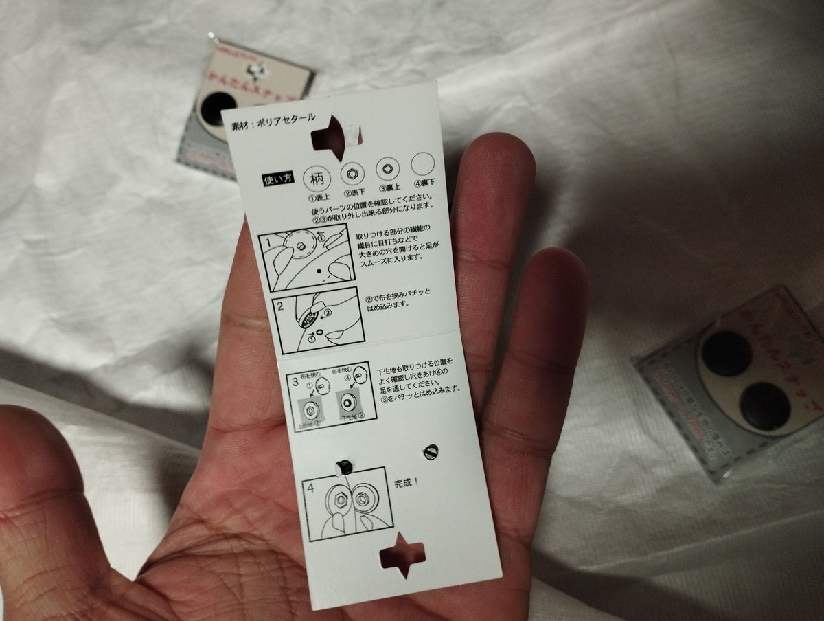 100円均一でも売ってる、縫い付け不要のスナップボタンを使います。