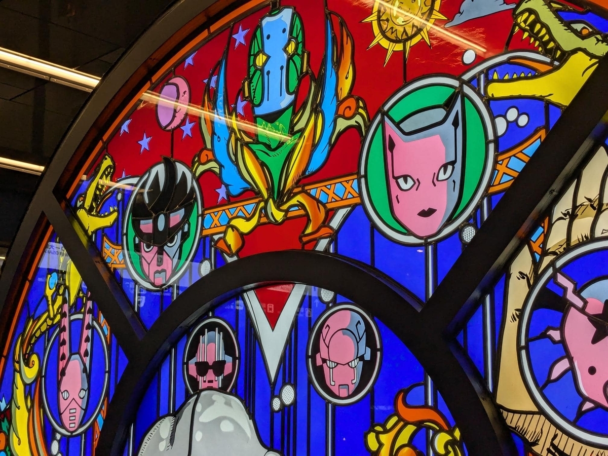 JOJOの奇妙な冒険でカルト的な人気の漫画家、荒木飛呂彦さんが手がけたステンドグラスパブリックアート作品「THE FOUNTAIN BOY」が7月29日にお披露目されたということで、見てきました。かつて大阪駅の待ち合わせ場所にあった噴水小僧をテーマにした作品とのこと。