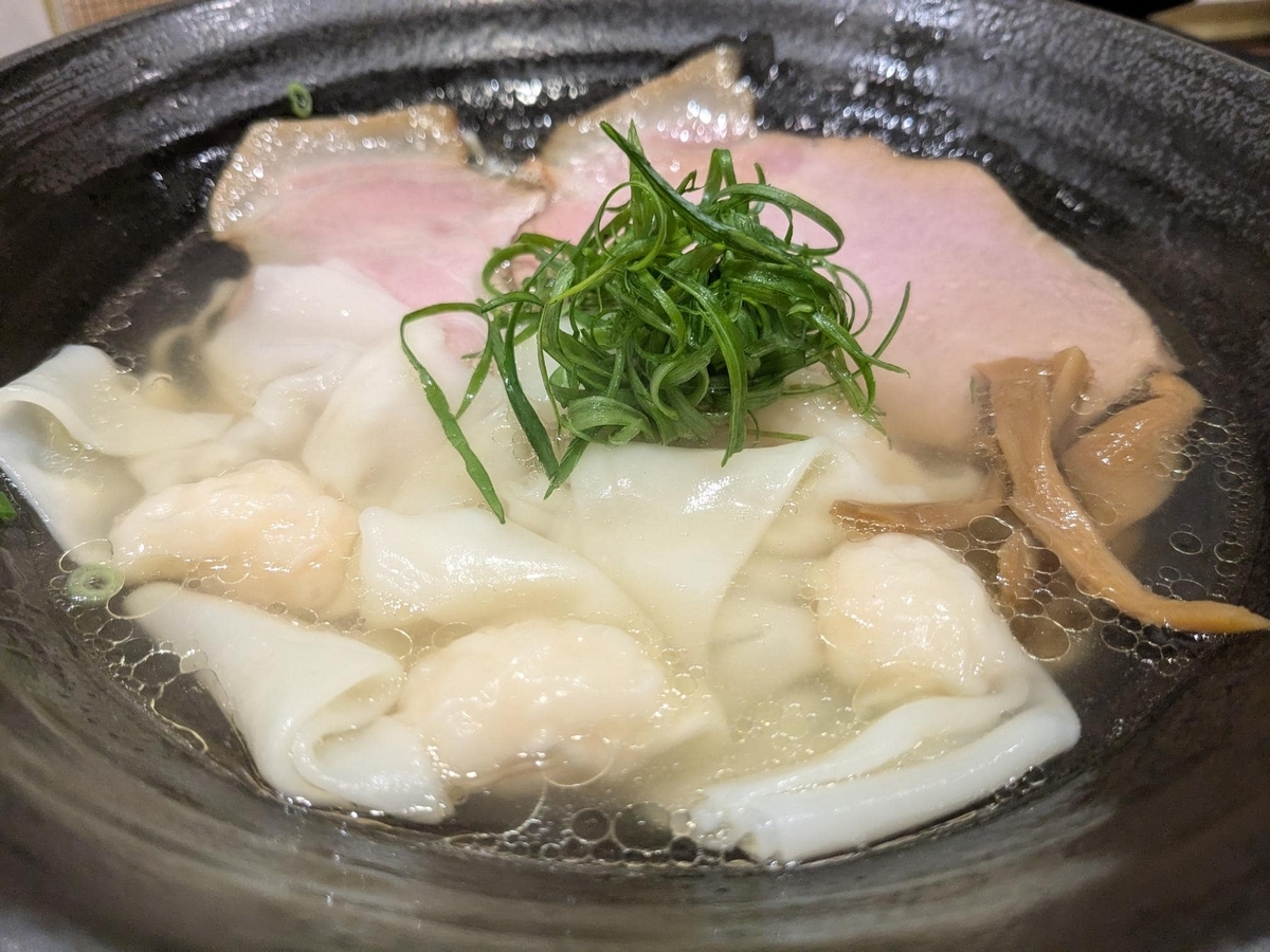 夜勤明けのまま大阪だったので、あんまり動いてない頭で、うんうん頷いていたら、海老ワンタンがトッピングされていました。