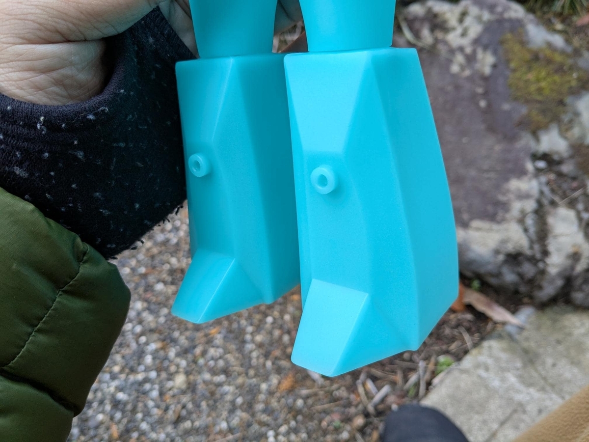 寒さで素体が固くなるのと、青蓄光という素材のせいか、無理に動かすと素体が伸びて白くなってダメージ出るかもしれません。