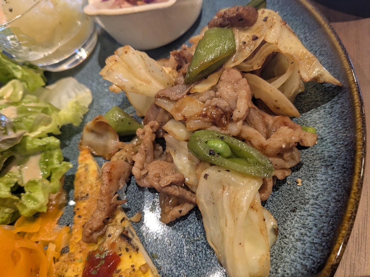 今回は、春キャベツと豚肉の甘辛味噌炒めをオーダー。