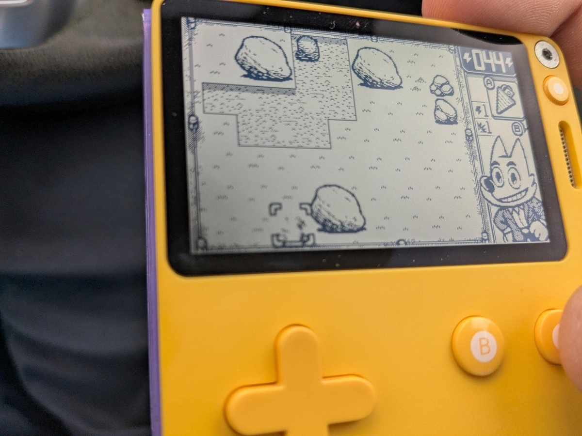パニック・プレイデートは黄色いキュートな本体に、高精細のバックライトなし(!)モノクロスクリーン、格納式のクランク付きという尖った仕様の最新の携帯ゲーム機です。
