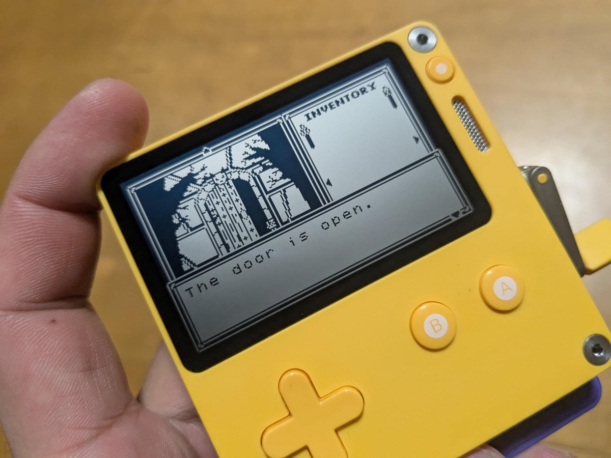 パニック・プレイデートは黄色いキュートな本体に、高精細のバックライトなし(!)モノクロスクリーン、格納式のクランク付きという尖った仕様の最新の携帯ゲーム機です。