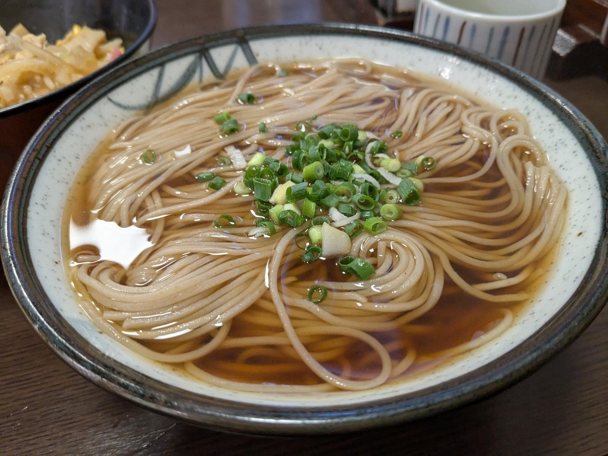 そばは、ネギしか乗ってないからなのか、かなり麺の量が多いです。