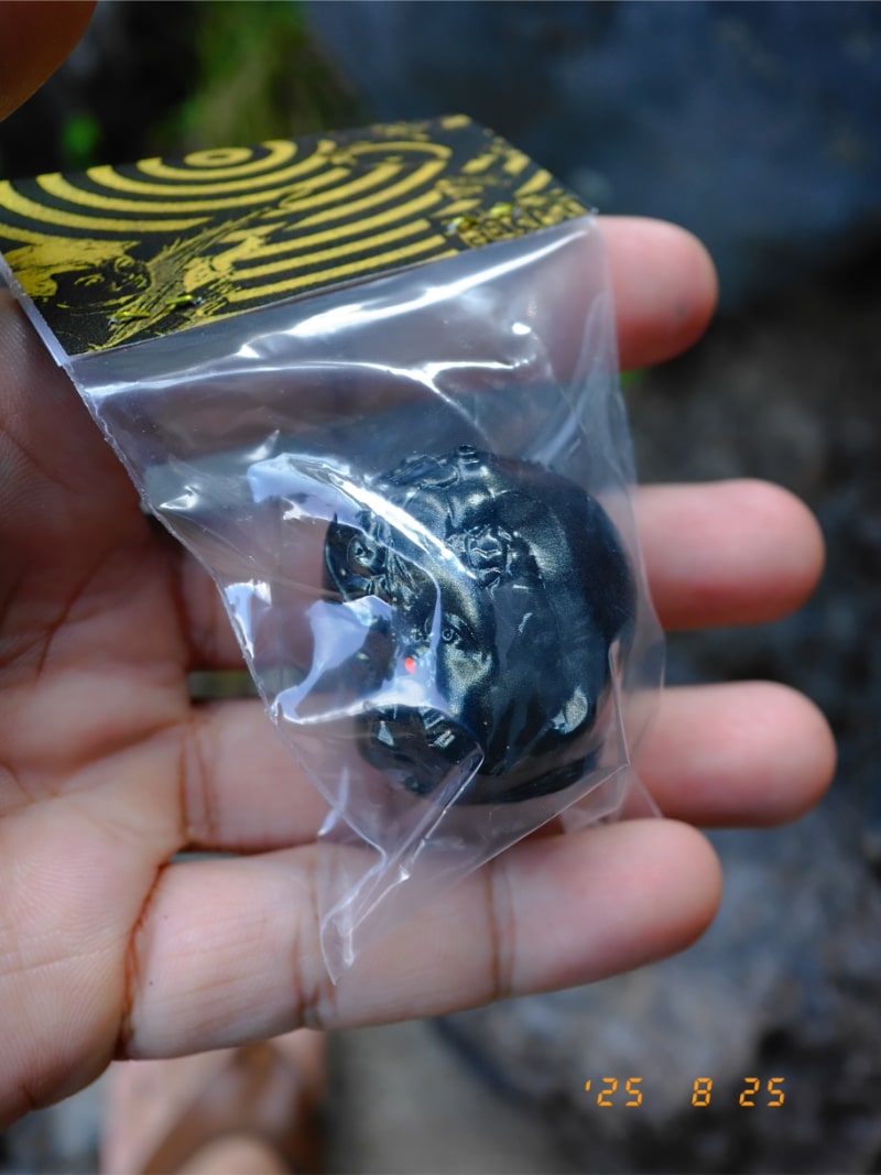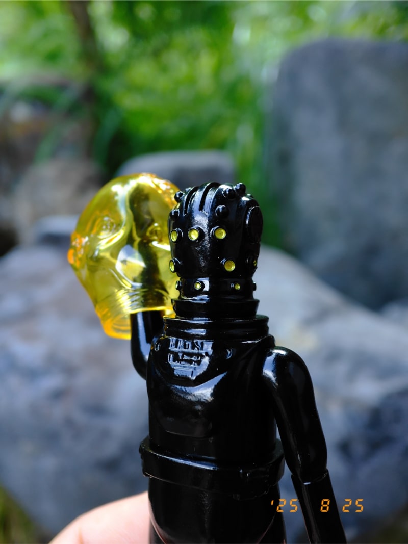おまけヘッドは、ボディと同じ黒成型に、ゴールドのパール塗料? で包み塗装されています。