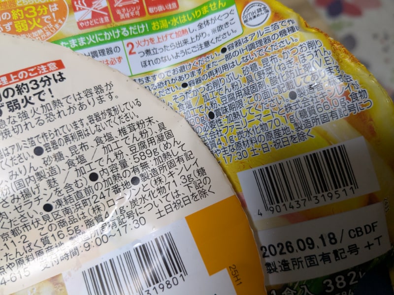 他のレビュー記事を見ると、この具材のバージョンもリニューアルしてて、406キロカロリーのバージョンが存在しているようです。現在は361キロカロリーと順調に熱量を減らしているみたいですね。