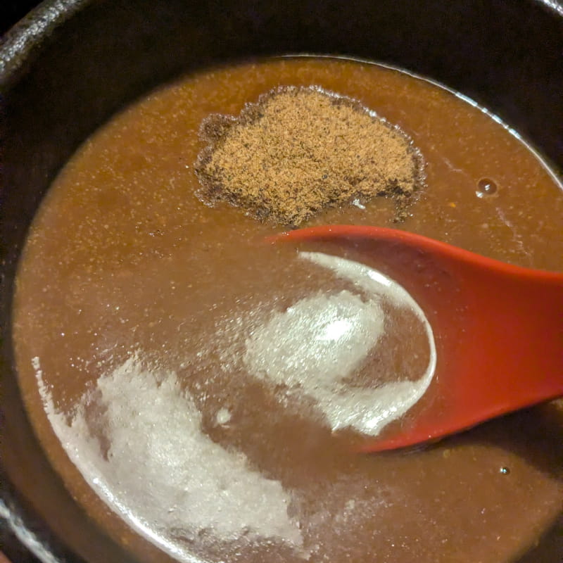 僕の舌では、豆味噌の渋みとやらも、魚粉の香りもまったく感じられません。